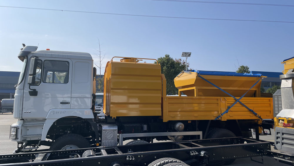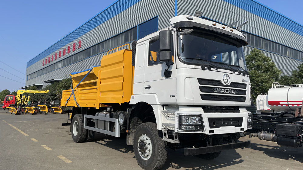 一、底盤(pán)配置: 采用陜汽德龍SX1189LA1F1C車(chē)身,配置玉柴B6.2NS6B210發(fā)動(dòng)機(jī)154/210馬力,國(guó)六排放標(biāo)準(zhǔn),軸距4700,5100,5300(mm),整備質(zhì)量8.8噸,額定載質(zhì)量9.305噸,五擋變速箱,帶動(dòng)力轉(zhuǎn)向,帶原廠空調(diào),該車(chē)專(zhuān)用裝置為融雪劑撒布機(jī),主要用于冬季道路除雪.該車(chē)僅在除雪作業(yè)時(shí)安裝除雪鏟和除雪滾刷.僅選用4000,4500,4700軸距(mm);車(chē)該車(chē)上黃牌,城區(qū)道路請(qǐng)注意限行標(biāo)識(shí)。