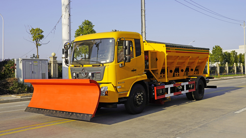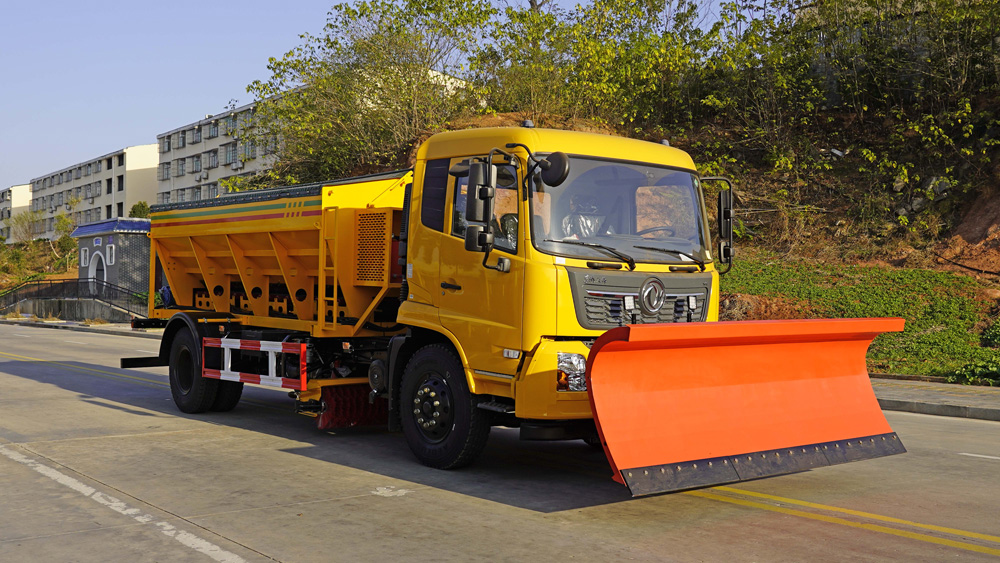 四、其他說明: 東風天錦多功能除雪車,集掃雪、推雪、吹雪、撒布等多種功能于一體,可通過更換不同的作業(yè)裝置,如除雪鏟、掃雪滾刷等,滿足不同場景下的除雪需求,有效提升掃雪鏟冰的工作效率和作業(yè)質量.